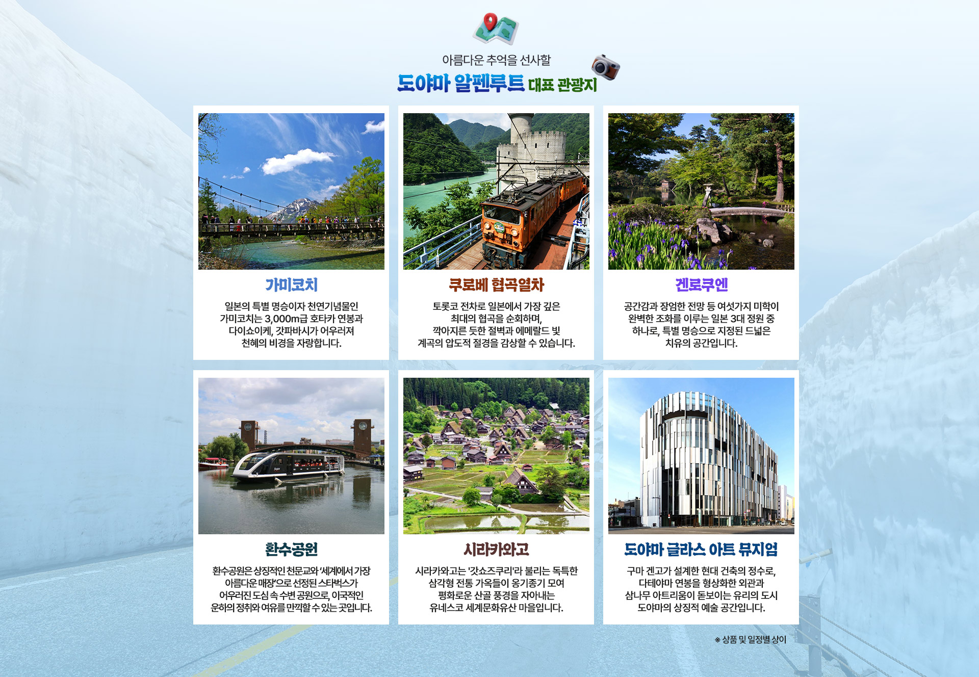 • [아시아나 전세기] 도야마/가미코치/알펜루트 5일 #카가온천 #호텔석식4회 #쇼가와유람선 #도야마직항