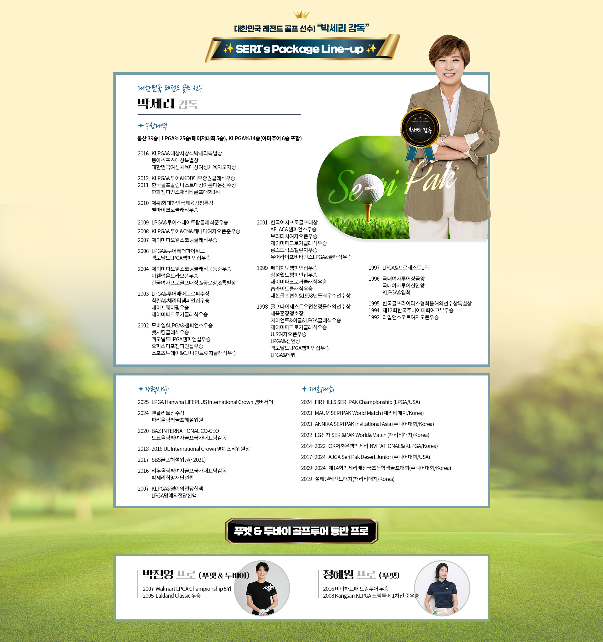 [골프 여제] 박세리와 함께하는 두바이 골프 7일 "SERI’S Golf Package"
