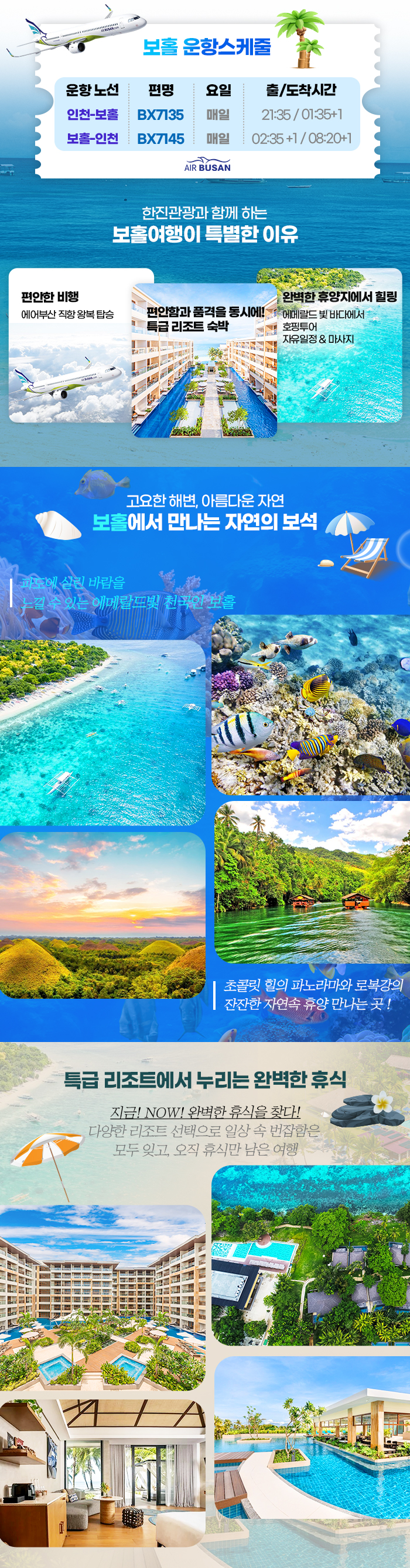 [필리핀의 숨겨진 보석, 보홀]특급 비 그랜드 리조트 슬림팩5일(아쿠아 풀뷰, 시내관광포함)